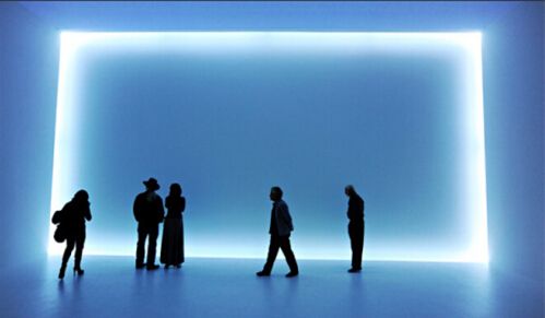觀眾看到墻面上多個顯示設(shè)備中,每個顯示畫面中都有人物的視頻靜止影像。每臺電視下都有一個控制按鈕(可以是自動感應(yīng)器),當(dāng)觀眾按到其中一個時(當(dāng)自動感應(yīng)器撲捉有人接近 ……